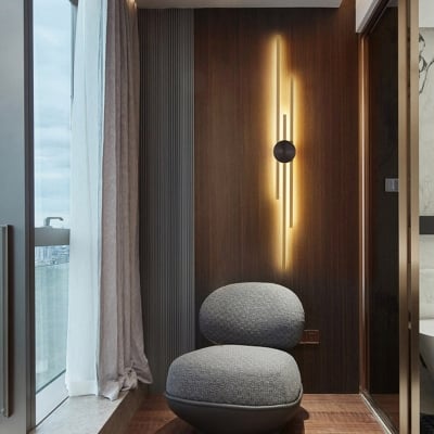 Apliques de pared de metal de forma lineal Luces de aplique de pared de estilo moderno en negro