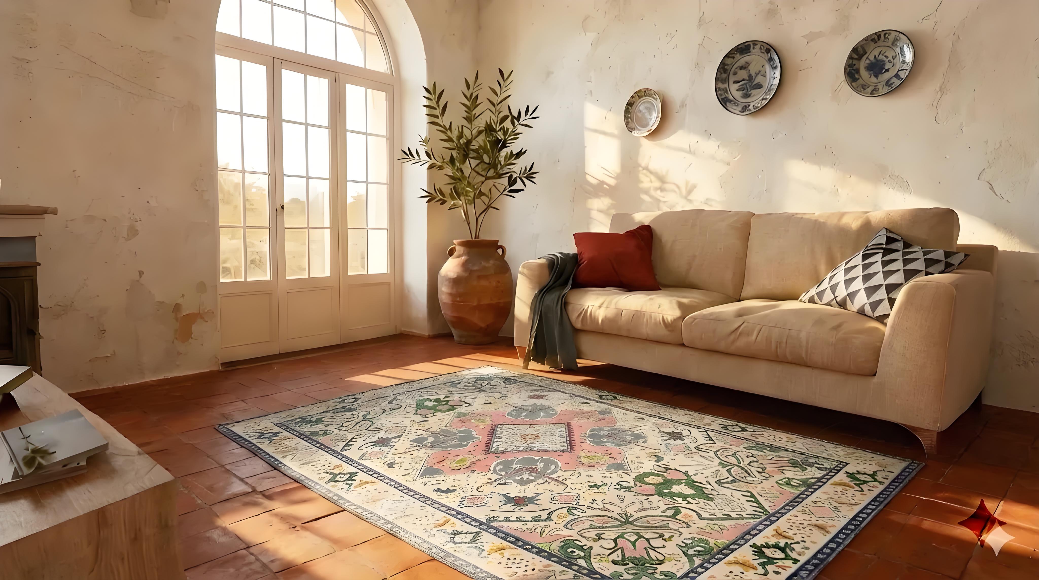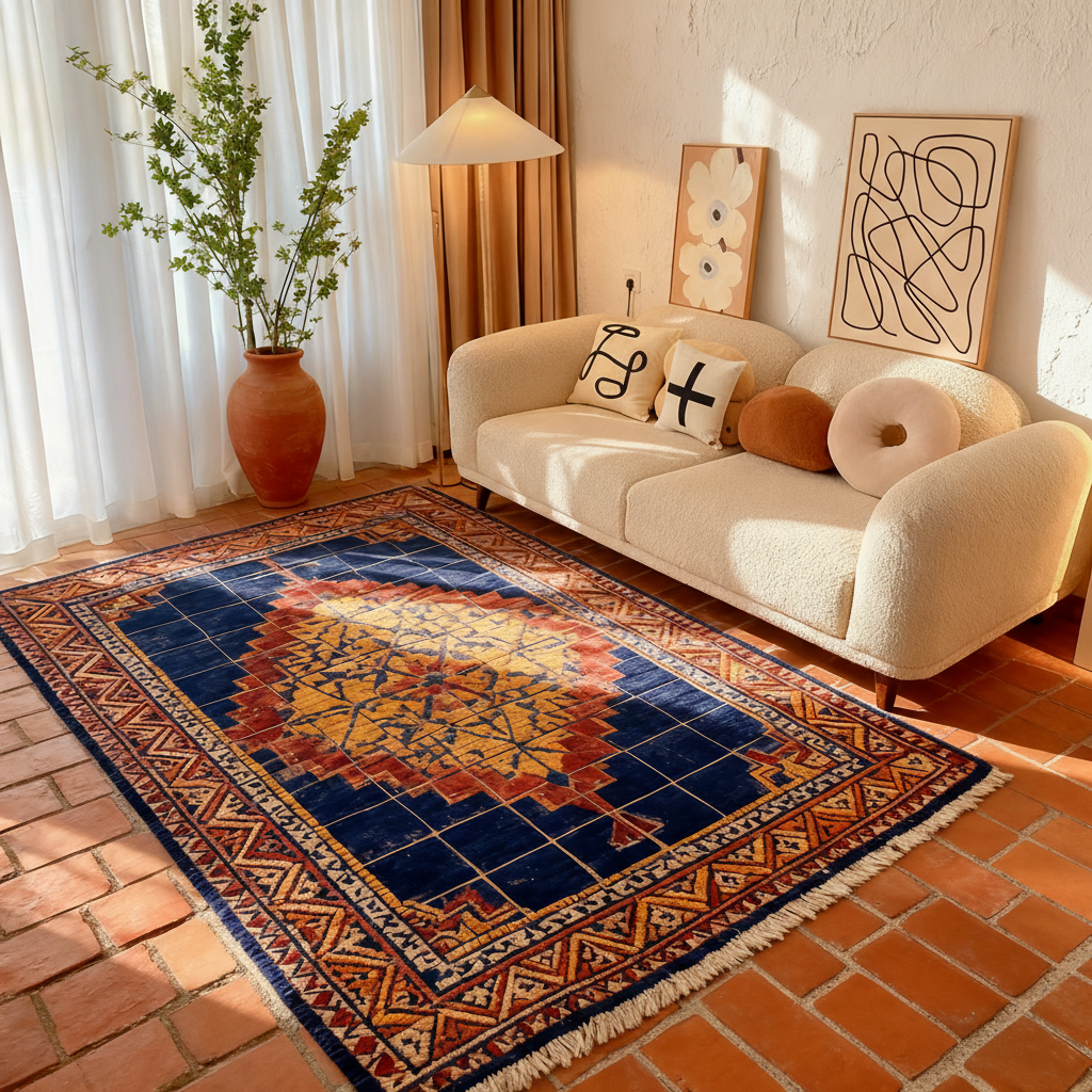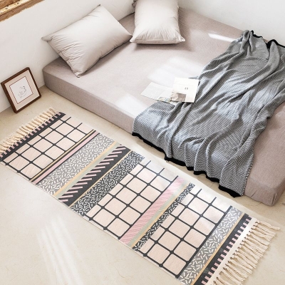 Alfombra bohemia con estampado del suroeste, alfombra con flecos de algodón, alfombra lavable para sala de estar