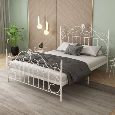 Estructura de cama de metal Glam con cabecera y pie de cama con estructura abierta Camelback