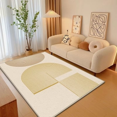 Alfombra minimalista Alfombra de poliéster beige Alfombra resistente a las manchas para decoración del hogar