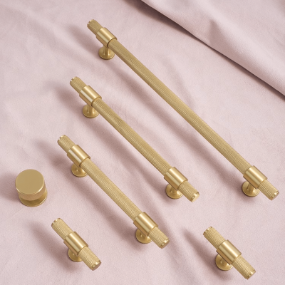 Tiradores sencillos dorados para puertas de armarios y puertas de armarios, estilo italiano con pomo moleteado.