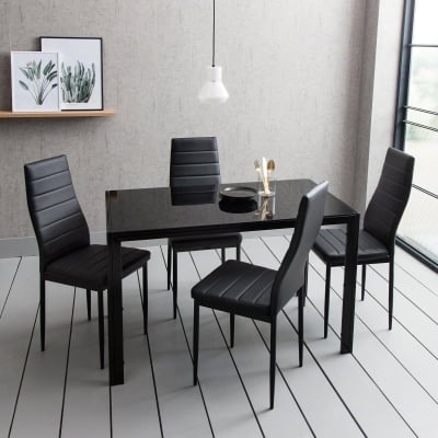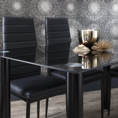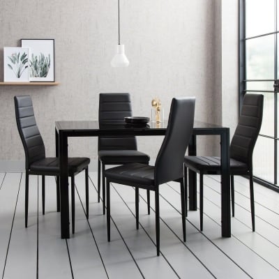 Juego de mesa de comedor de cristal Anya - 4 plazas - Negro