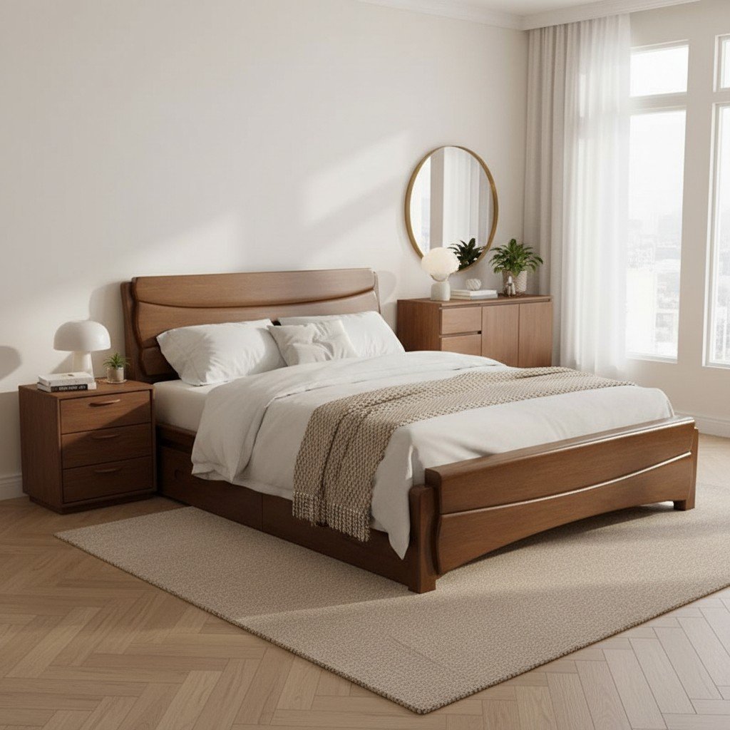 Cabecero de cama estándar tradicional de madera maciza con estribo